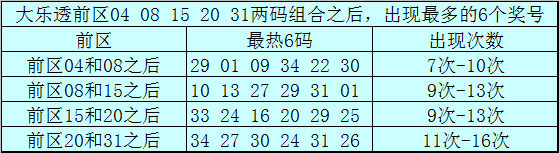 前区冷码统计:大乐透第26002期前区奖号为:04、08、15、20、31,截止第26002期历史上大乐透已经开出了2820期奖号了,在连续两码奖号中: