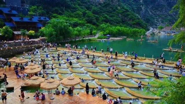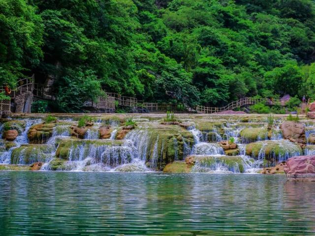 网红打卡点,喜欢拍照的朋友不可错过!水坝的造型像鱼鳞一样,一片接一片!水流漫过堤坝,进而形成层叠的瀑布景观,格外好看!还可以带孩子来玩水,在阳光的照射下,波光粼粼,四周是丹崖赤壁,视觉冲击感很强!