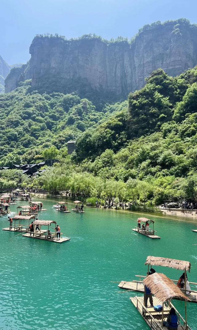 潭水呈现碧绿,清新透亮,清澈见底,一年四季都呈现出这种景象,被誉为“太行第一潭”,“太行绿宝石”,我感觉恍惚间,还有种九寨沟的美感!微风吹过水面,现在这里拍照很好看,一瞬间我就像闯进了人间仙境,来这里,看到了很多摄影专门来这里拍摄。